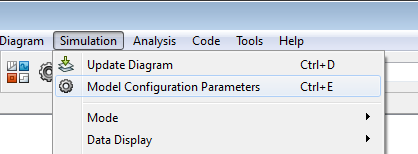 In the Simulink Editor, select Simulation > Model Configuration Parameters.