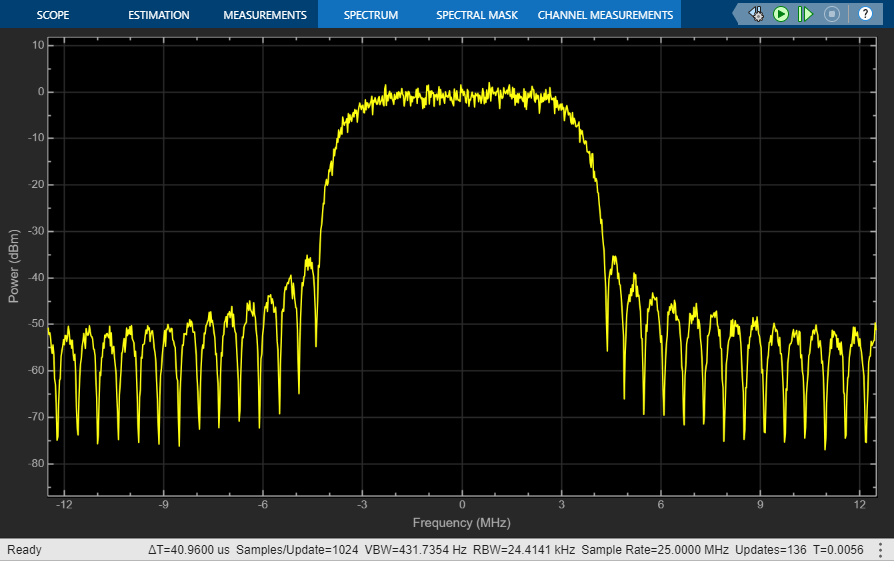 From this example, you can generate a DVB-S2 transmitter waveform using these steps: