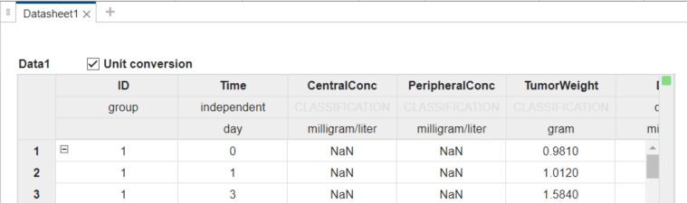 Perform Unit Conversion on Datasheet Columns Using SimBiology Model Analyzer