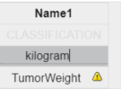 In the resulting Name1 column, double-click the Expression cell and enter TumorWeight, to duplicate the existing TumorWeight column.