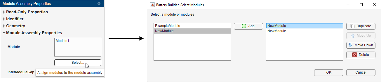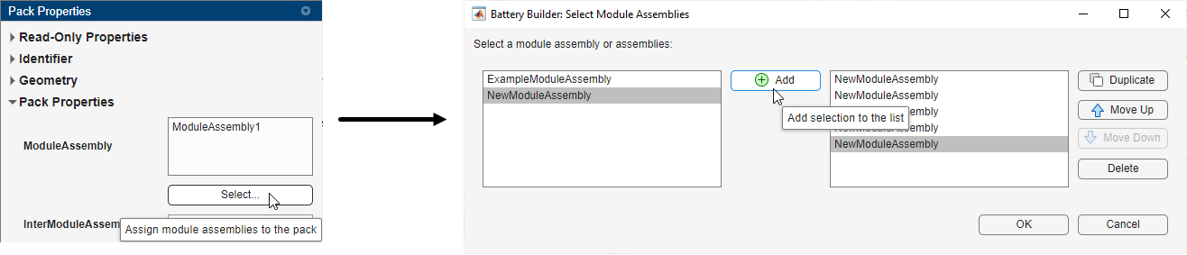 现在,您必须将 ModuleAssembly 对象链接到此电池包: