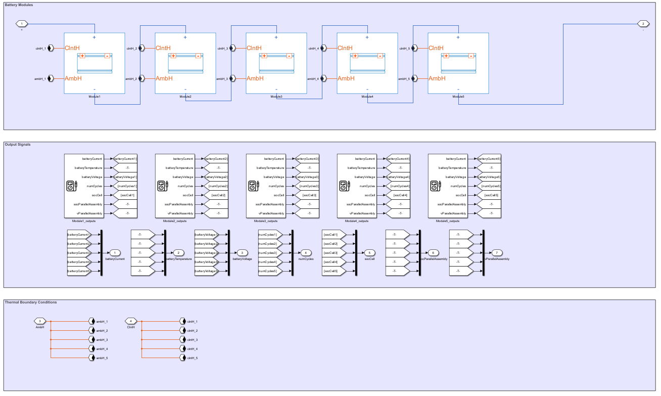 pack = batteryPack(moduleAssembly, ... AmbientThermalPath="CellBasedThermalResistance", ... CoolantThermalPath="CellBasedThermalResistance");