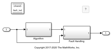 在这个示例中,多个 Model 模块引用了一个代表故障处理算法的模型。每个 Model 模块都是该算法的独立实例。每个实例都会计算并存储模型所包含的信号的副本。