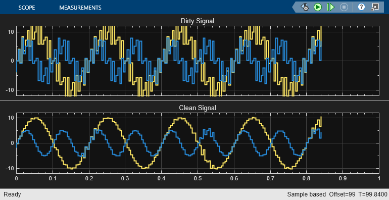 Simulating the model for this example requires a license for DSP System Toolbox™. Converting frame-based data in the Simulation Data Inspector does not require a license for DSP System Toolbox.