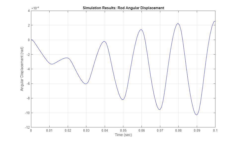 Mechanical Load 子系统解决运动方程,该方程直接使用标准 Simulink 模块计算。假设旋转角度很小。要查看 Mechanical Load 子系统的掩码下方及其结构,右键点击该子系统并选择封装 > 查看封装内部。