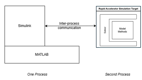 快速加速模式从您的模型创建一个快速加速仿真目标。这个仿真目标包含求解器和模型方法,但位于 MATLAB 和 Simulink 的外部。它使用进程间通信与 Simulink 进行通信。