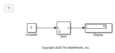 1. Open and unlock the library LibraryA containing a masked block Gain with a mask parameter g1 set to 2. To unlock the library, in the Library tab of the Simulink Toolstrip, in the Protect section, click Locked Library.