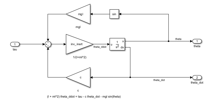 (I+ml2)θ¨=τ-cθ˙-mgl×sin(θ).