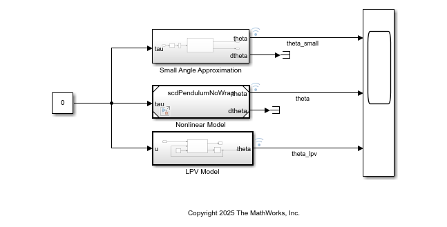 To compare the models, you can use the preconfigured model ComparePendulumModels.slx provided with this example.