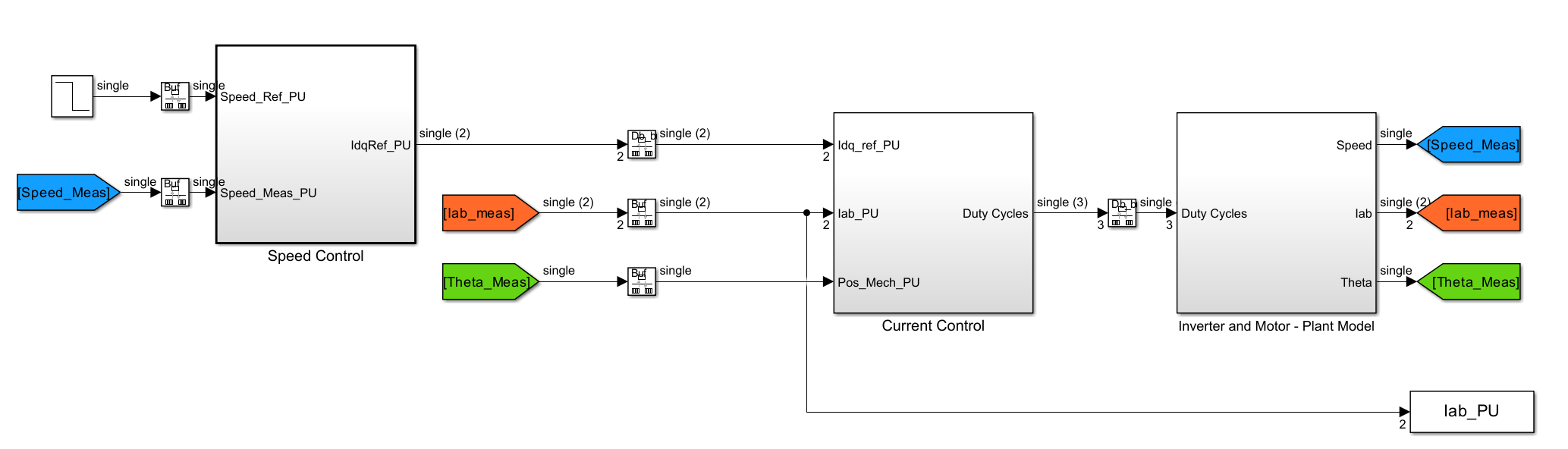 The model used in this example is derived from the Motor Control Blockset™ example Determine Power Losses and THD for PWM Methods (Motor Control Blockset).The original example compares different PWM strategies and uses the total harmonic distortion metric to compare them. For this example, you use the first PWM strategy with distortion added to the plant.