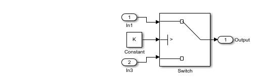 参数配置允许 Simulink® Design Verifier™ 在分析过程中评估参数范围以及默认值的影响。假设有一个示例模型,该模型说明了参数配置对分析结果的影响。该模型包含一个开关模块,其控制端口的条件为 > 0,并受在基础工作区中值为 0 的标定参数 K 的影响。