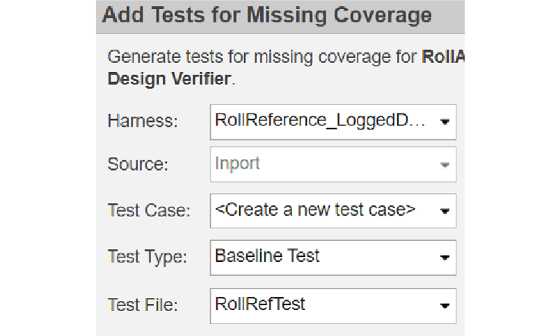 使用 Simulink Design Verifier 生成扩展覆盖率并重现设计错误的测试,并将生成的测试添加到您的测试文件中。