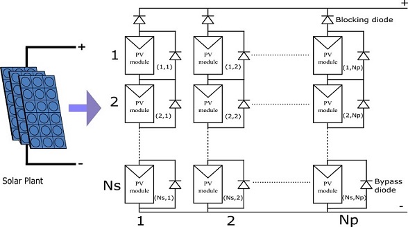 • Both bypass diode and series module strings blocking diode - The solar plant has both protection diodes.