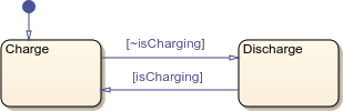 在本教程中,您使用 Stateflow® 图对一个可充电电池系统的逻辑进行建模。