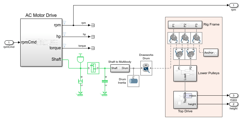Open the sfDrawworks model. This model represents the equipment as a plant and controller.