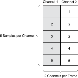 With double buffering, the DMA uses one buffer to transfer an audio frame from the processor to the audio device while the other buffer receives the processed audio frame from your audio algorithm. When sending the data to the audio device, doing so helps to prevent overwriting the buffer.