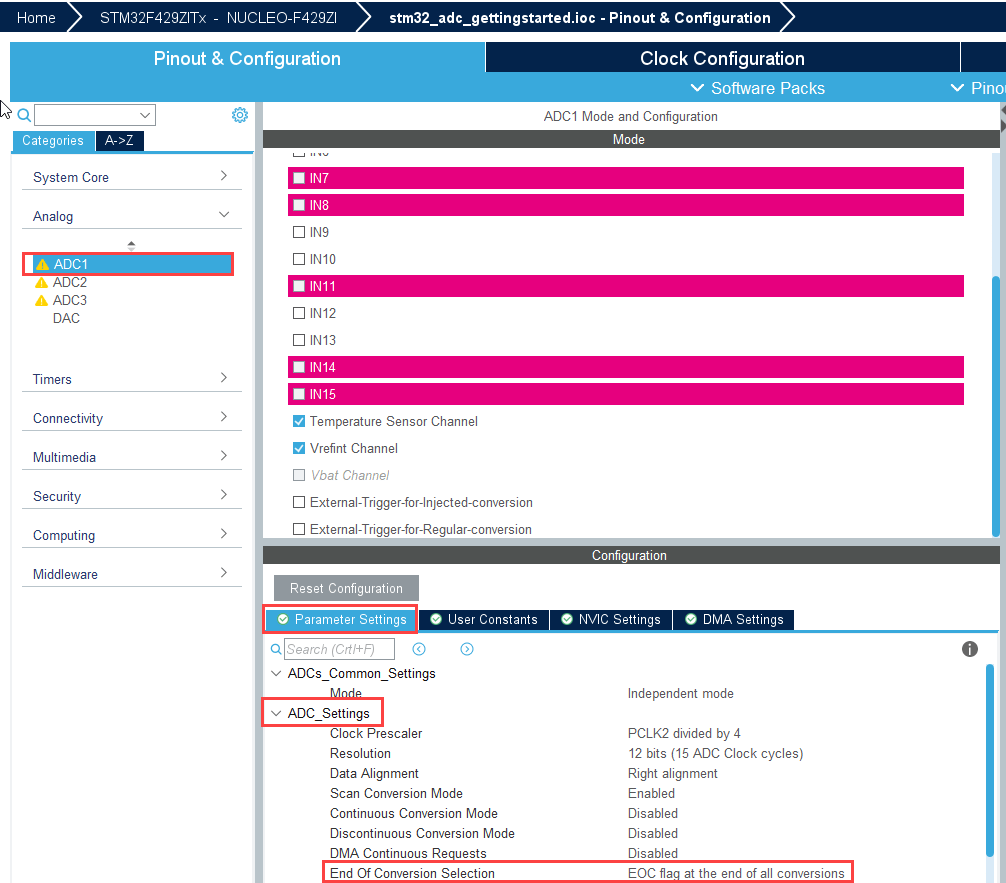• Ensure that End of Conversion Selection is set to EOC flag at the end of all conversions.