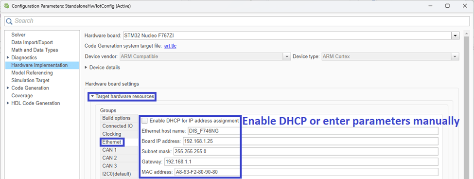 This example shows how to use the STM32 Nucleo F767ZI board to process an ECG signal input from an ECG sensor, extract the heart rate in beats per minutes (bpm), and send the ECG signal and heart rate to the ThingSpeak™ internet of things (IoT) analytics platform service.