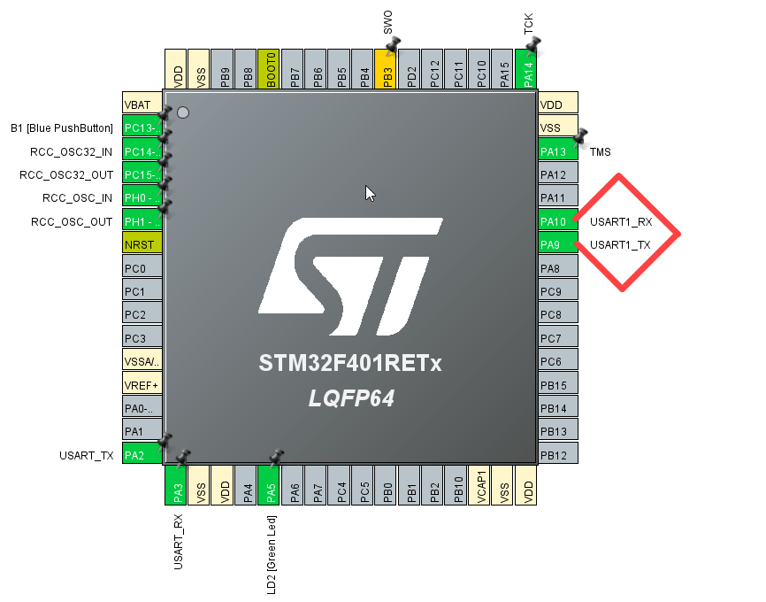 Connecting USART1 Pin PA9 to Pin PA10
