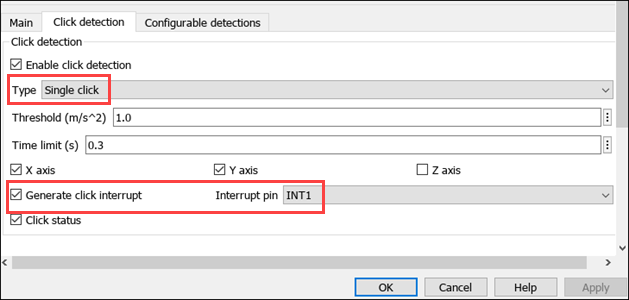 Configure the Click Detection on LIS3DH for Interrupt Service Routine (ISR)