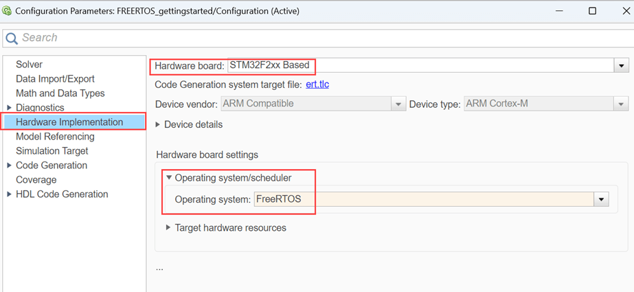 5. Consider the following Simulink configurations when you set Operating system to FreeRTOS:
