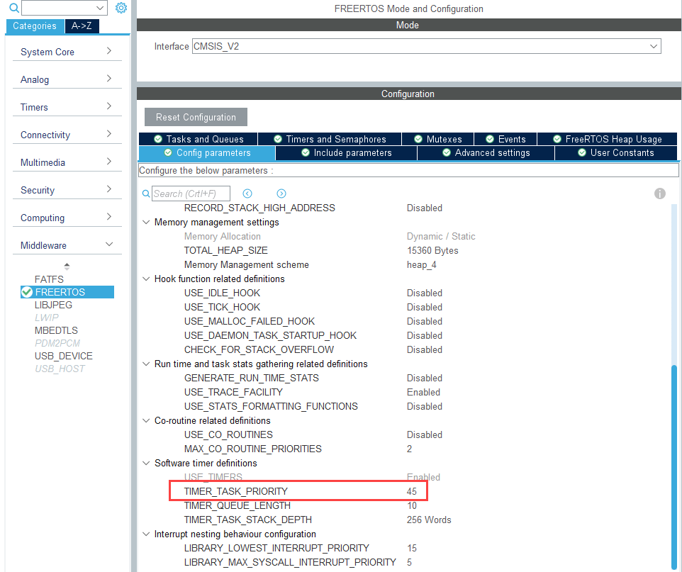 When you select FreeRTOS as operating system, ensure the following settings are configured in STM32CubeMX project.