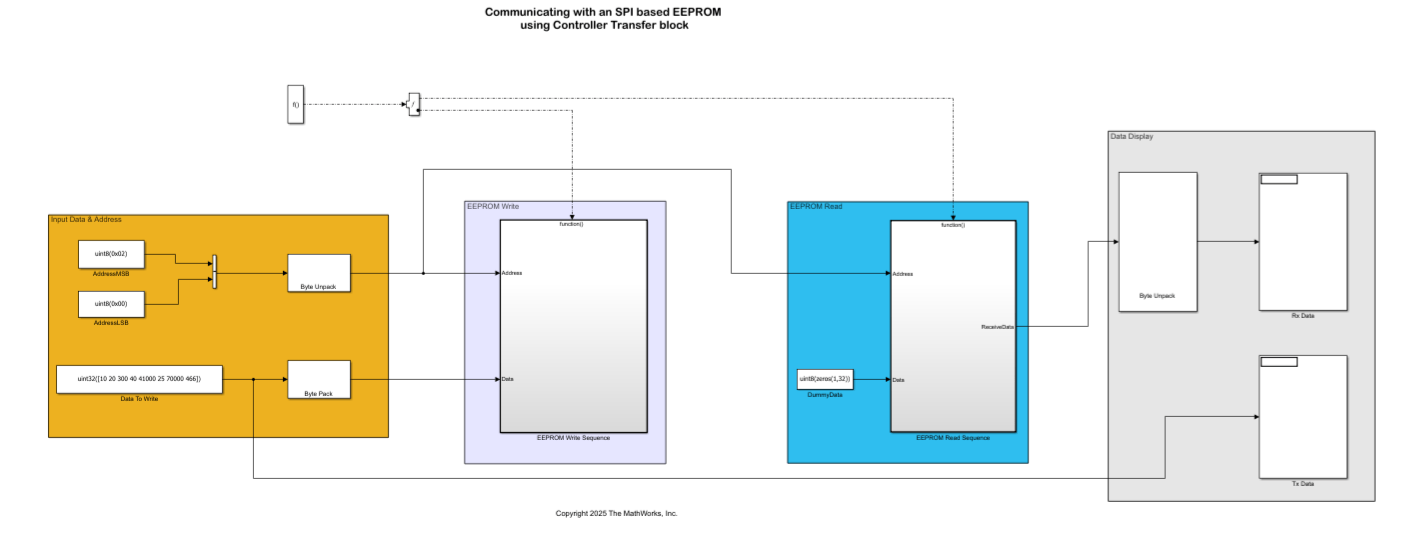 spiEEPROMWithControllerTransferBlock.slx - Read and Write EEPROM Data Using SPI Controller Transfer Block