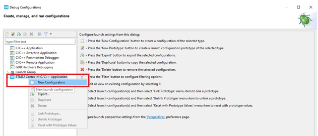 Right click on STM32 Cortex-M C/C++ Application and select New Configuration.