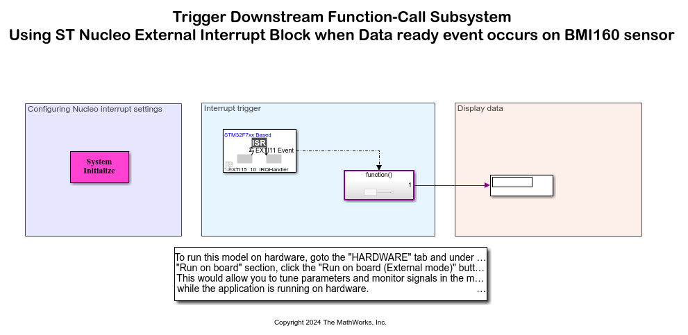 Trigger Downstream Function-Call Subsystem Using STMicroelectronics STM32 External Interrupt Block with Data Ready Event on BMI160 Sensor