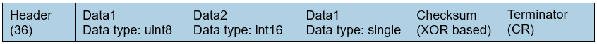 Header size (1 byte) + Data1 (1 byte) + Data2 (2 bytes) + Data3 (4 bytes) + Checksum (1 byte) + Terminator (1 byte)
