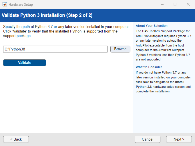3.7 or later is installed. Click Validate.