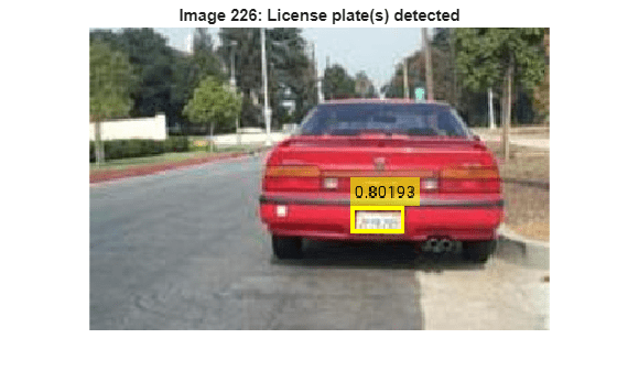 figure allBoxes = detectionResults.Boxes; allScores = detectionResults.Scores; allLabels = detectionResults.Labels; for i = 1:length(imds.Files) img = readimage(imds,i); idx = (allLabels{i} == "License plate"); plateBoxes = allBoxes{i}(idx,:); plateScores = cellstr(string(allScores{i}(idx))); imshow(img); if isempty(plateBoxes) title(sprintf("Image %d: No license plate detections",i)); else annotatedImg = insertObjectAnnotation(img,'rectangle',plateBoxes,plateScores,... 'LineWidth',3); imshow(annotatedImg); title(sprintf("Image %d: License plate(s) detected",i)); end pause(0.1) end