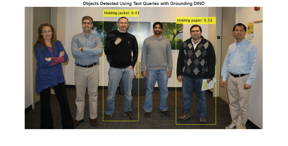 labels = {'Holding paper','Holding jacket'};Specify the class descriptions for the detector to use as text queries for performing object detection.