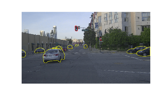 This example shows how to use a pretrained instance segmentation algorithm to detect cars and traffic lights in an image and automate polygon labeling in the Video Labeler app.These autogenerated polygon labels can then serve as ground truth data for training or fine-tuning instance segmentation models.