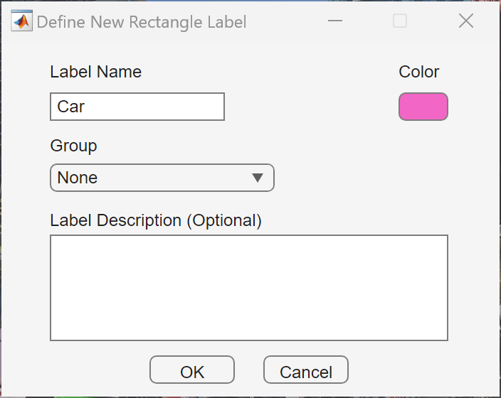 To define another label, select the Add Label on the Image Labeler tab of the app toolstrip again, and select Rectangle. Specify Label Name as Car, and select OK. Define additional ROI definitions using this process.