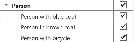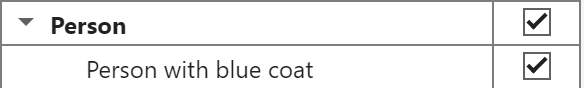To add a new descriptive noun phrase, such as Person with blue coat, write the phrase in the editable entry below the corresponding label name, highlighted in blue. To remove a descriptive noun phrase, select the noun phrase and click Remove Phrase.
