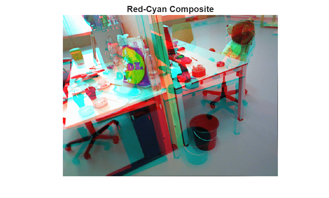 Visualize a red-cyan composite image of the two views to for better visualization of the relative camera motion.