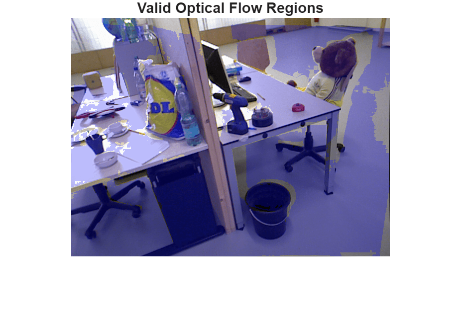 Visualize the locations of valid optical flow using a blue overlay.