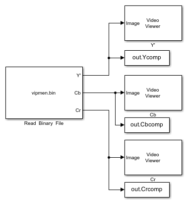 The model returns the luminance, blue difference, and red difference components of the input video stored as binary data. The Read