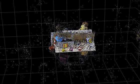 Use the generatePointCloud function to generate a dense, colored point cloud of the scene. Set the maximum number of points in the point cloud to 100,000 by specifying the MaxNumPoints name-value argument. This value achieves a balance between the quality of the point cloud, the computing time, and storage space.