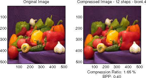 [CR,BPP] = wcompress('c',X,'wpeppers.wtc','spiht','maxloop',12);
