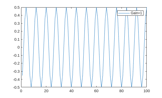 plot(real(data_Data_Out(1:100))); legend("Gain=1") hold on